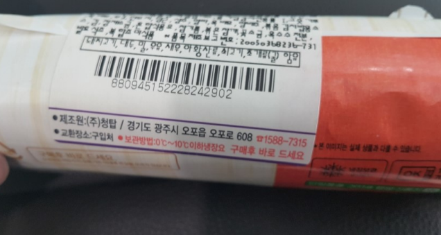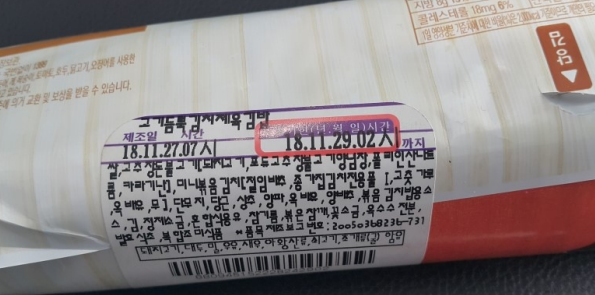 김밥 마지막 한칸에 고기덩어리가 큰게 하나 있었어요.