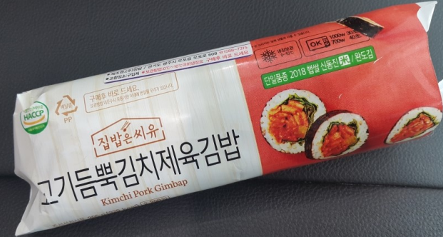 고기듬뿍김치제육김밥이라 고기랑 김치가 들었어요~